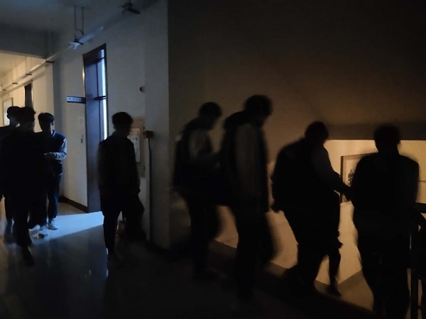 学生躲避现场