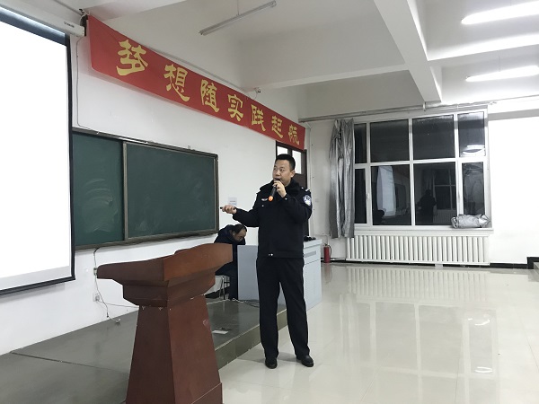 为加强校园法制教育,培养学生知法守法的责任意识,增强学生安全防范意识和自我保护能力。大连新港通关技工学校邀请大黑石派出所民警陈大鹏警官于2019年11月25日在二号教学楼西多媒体开展校园法制教育宣传讲座。