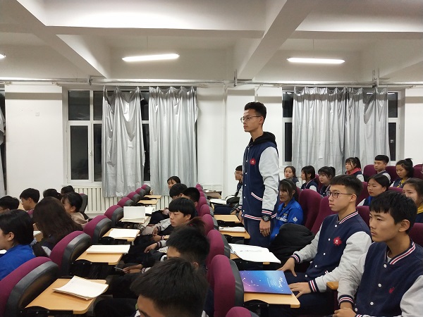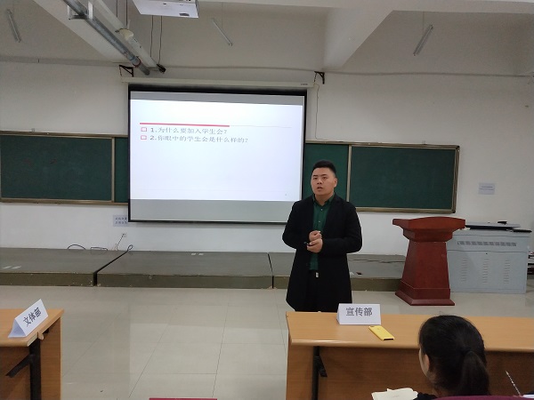 首先由赵主任提出了四个问题,或是懵懂,或是紧张,同学们的回答都各有各的想法,在愉快的回答中原本紧张的气氛也得到了缓和,随后赵主任介绍了学生会的文化建设,同学们明确到学生会沿用近十年的工作宗旨:“从学生中来,到学生中去”。