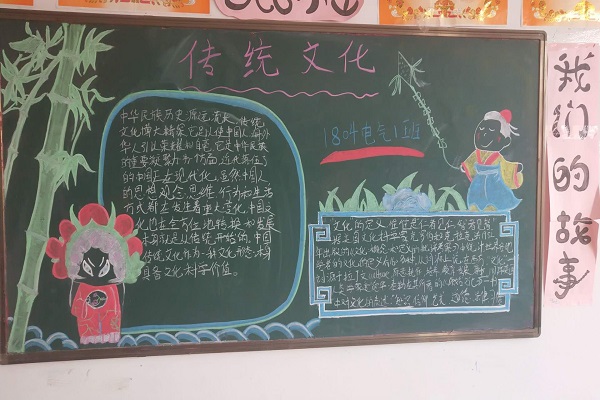 为了丰富学院校园文化生活,调动学生学习的积极性、主动性和创造性,努力营造良好的校园文化氛围,提高学生的国学素养,近日,学院中职部以“弘扬中国传统文化”为主题,在各班级内组织开展了黑板报设计活动。