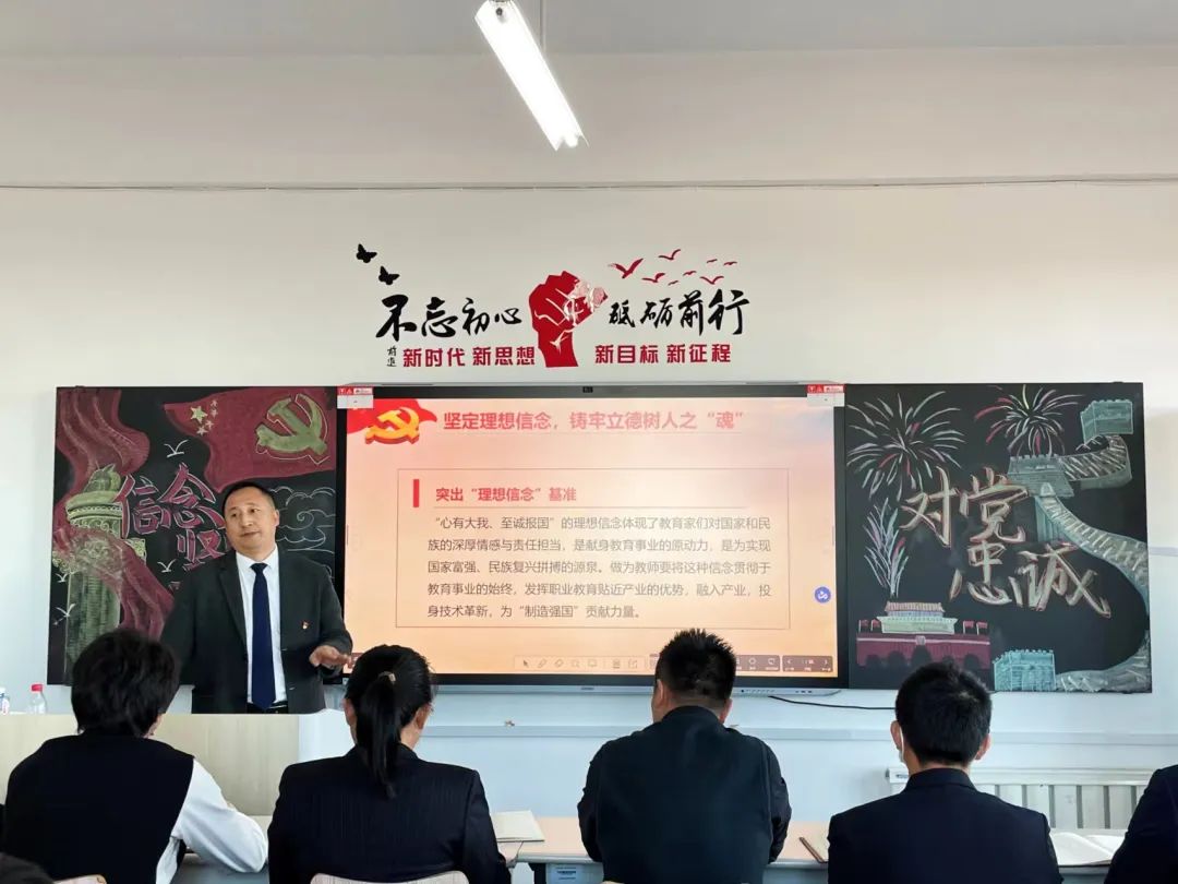 今朝花开胜往昔,料得明日花更红。2023年12月1日,中职部党支部开展了主题党课活动。本次党课主题为“新时代教师的责任与担当”,由学院纪委书记解建国主讲,全体党员教师及积极分子教师参加。
