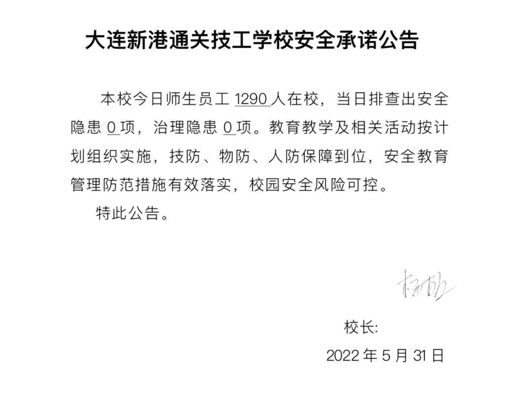 大连新港通关技工学校安全通告(5月31日)