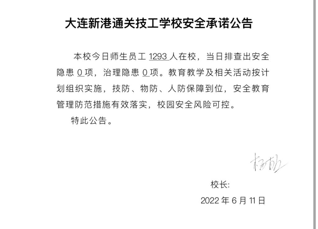 大连新港通关技工学校安全通告(6月10日)