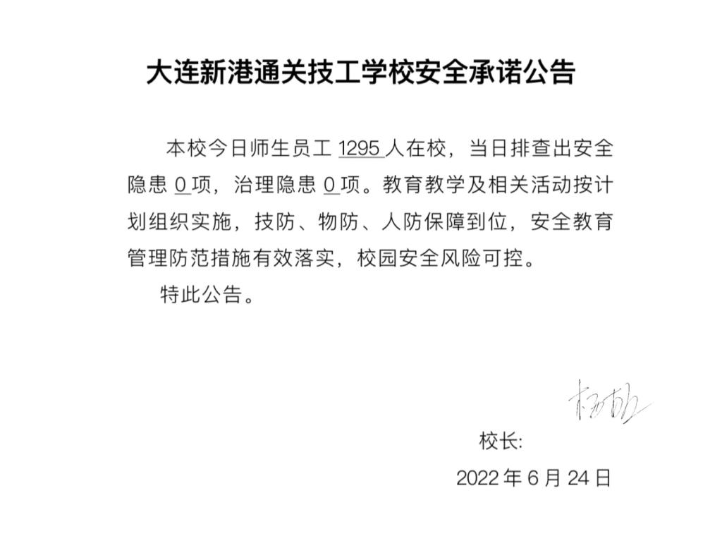 大连新港通关技工学校安全通告(6月24日)