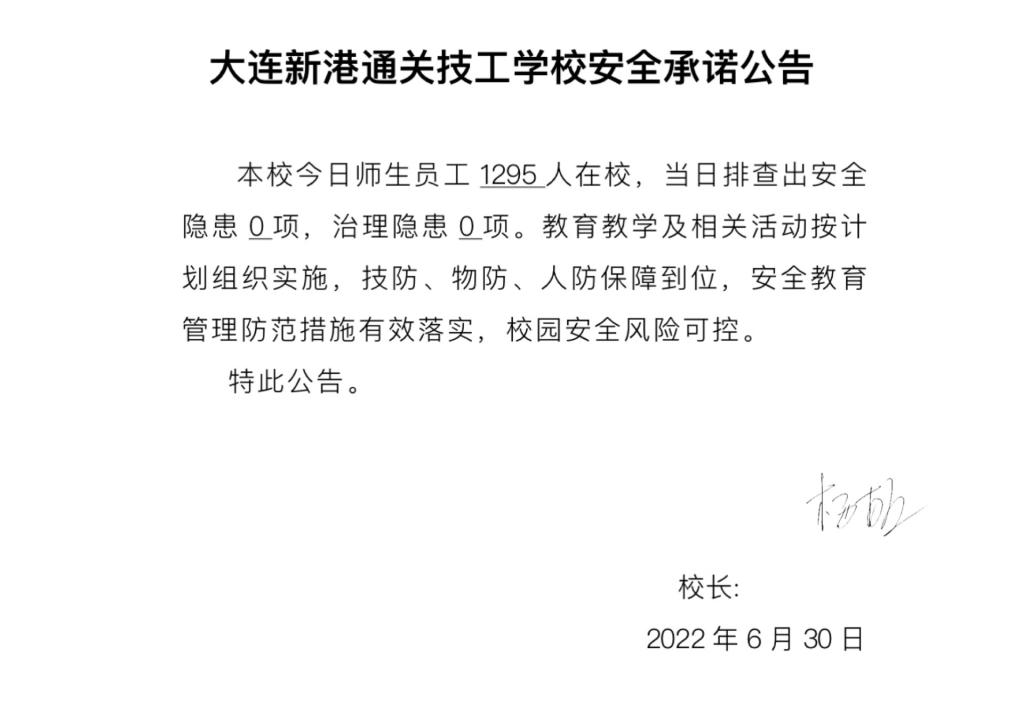 大连新港通关技工学校安全通告(6月30日)