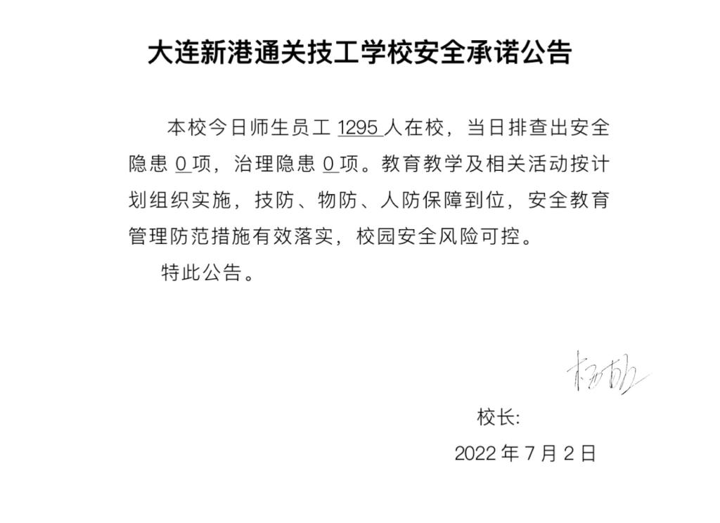 大连新港通关技工学校安全通告(7月2日)