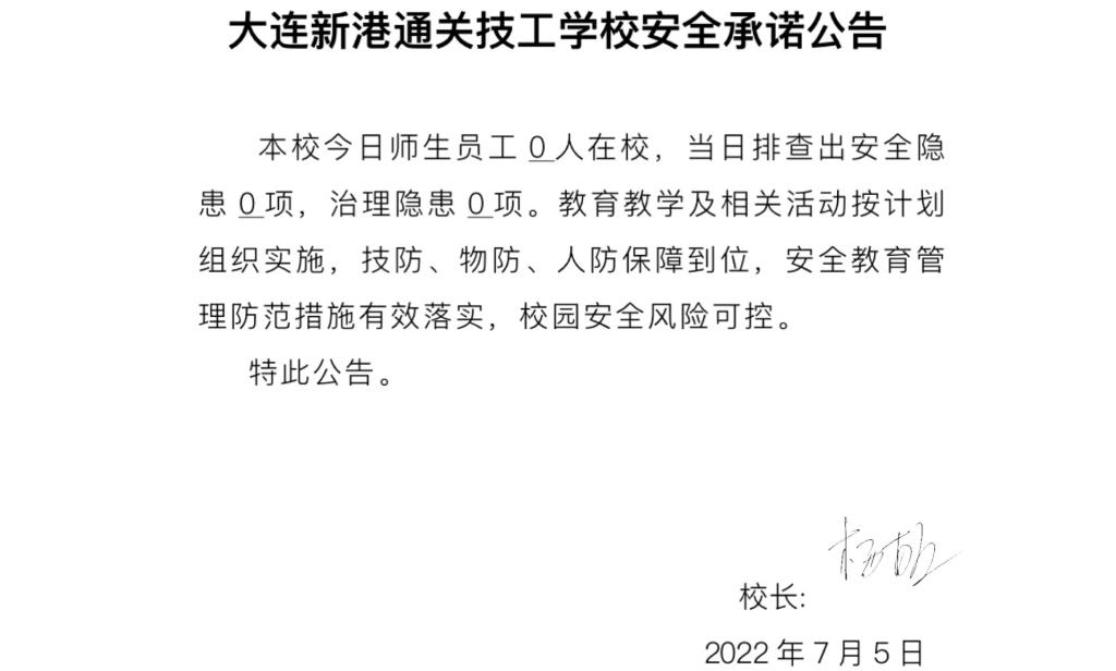 大连新港通关技工学校安全通告(7月6日)