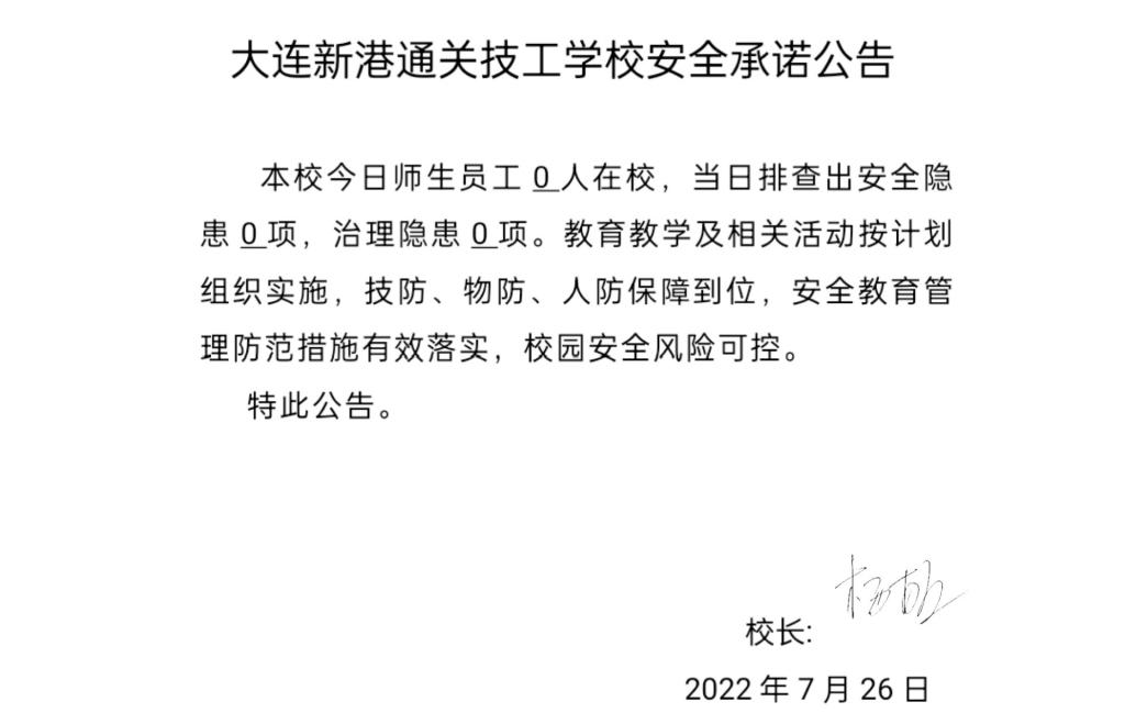 大连新港通关技工学校安全通告(7月25日)