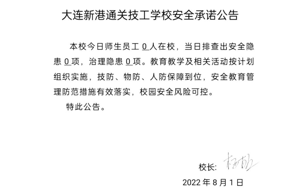 大连新港通关技工学校安全通告(8月2日)