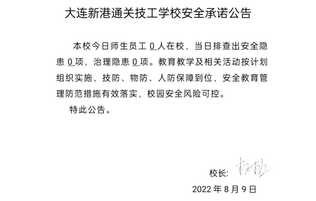 大连新港通关技工学校安全通告(8月9日)