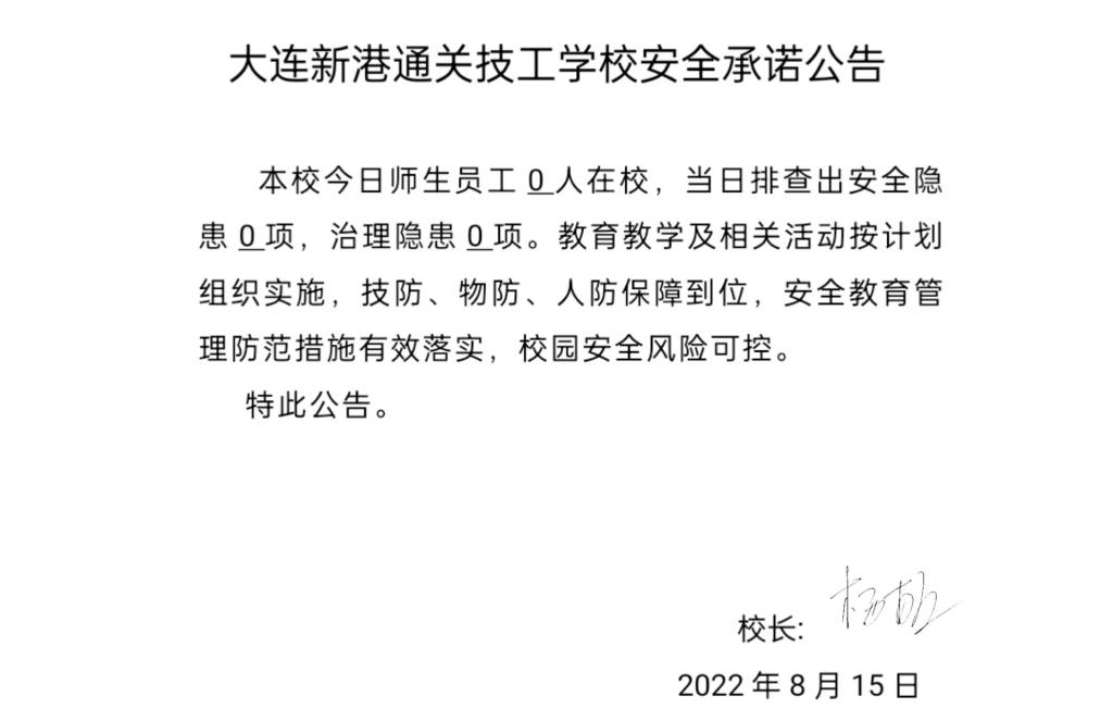 大连新港通关技工学校安全通告(8月15日)