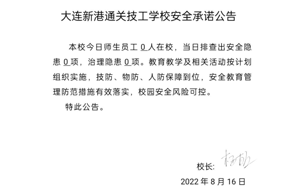 大连新港通关技工学校安全通告(8月17日)
