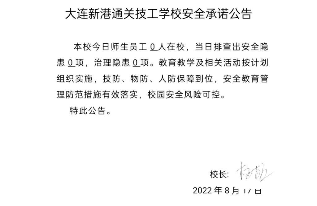 大连新港通关技工学校安全通告(8月17日)