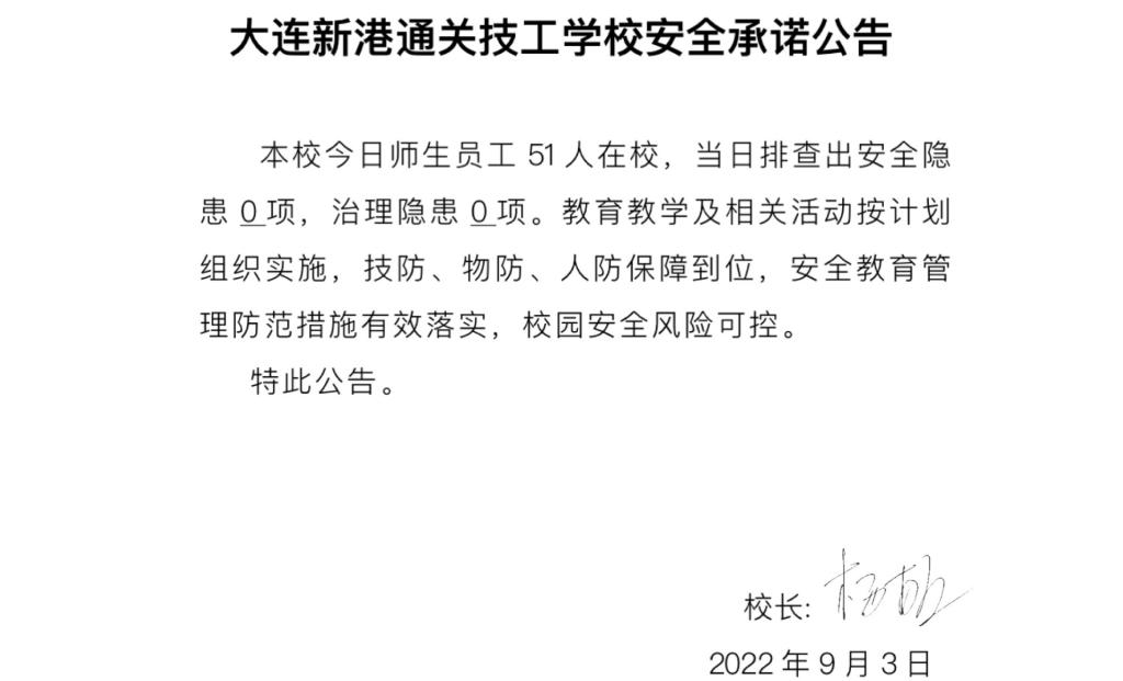 大连新港通关技工学校安全通告(9月4日)