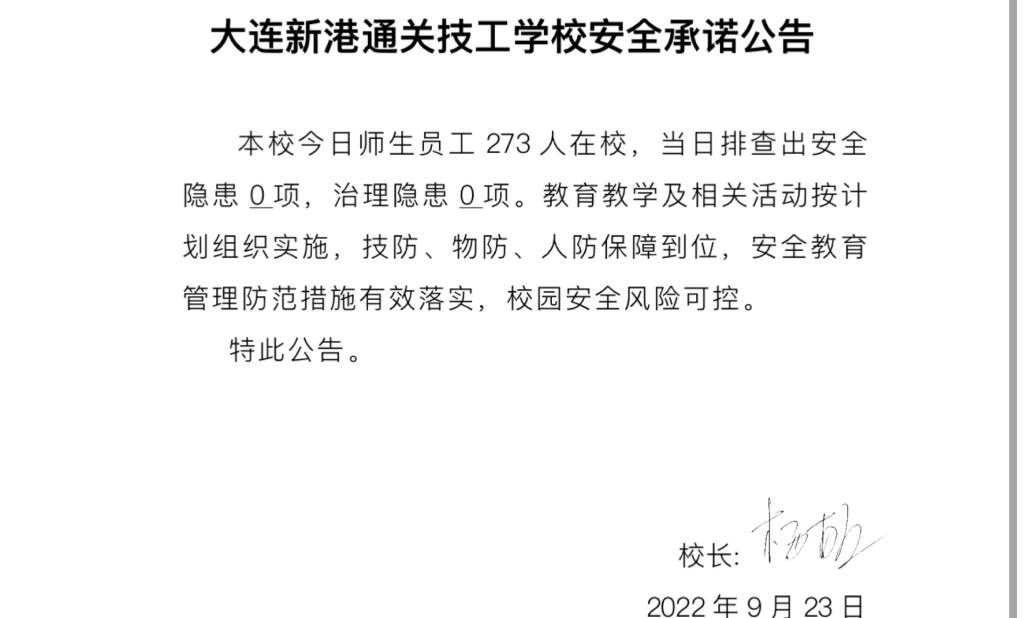 大连新港通关技工学校安全通告(9月23日)