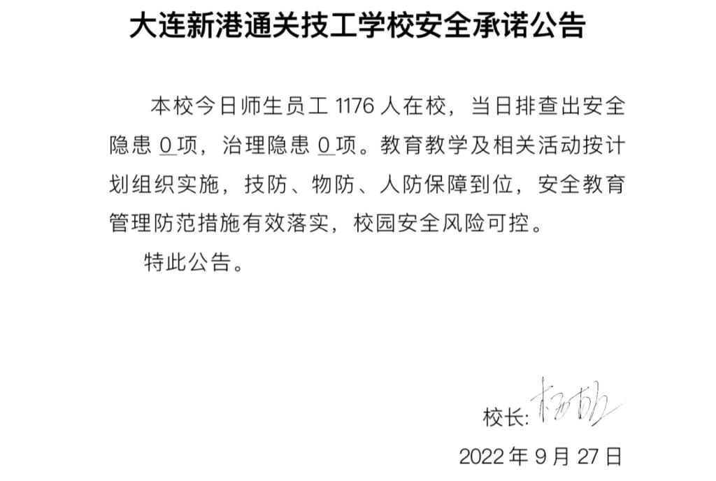 大连新港通关技工学校安全通告(9月27日)