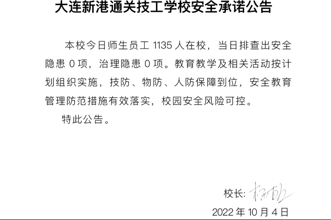 大连新港通关技工学校安全通告(10月4日)
