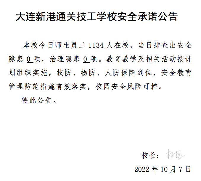 大连新港通关技工学校安全通告(10月7日)