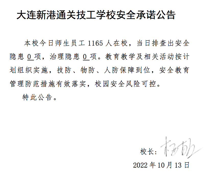 大连新港通关技工学校安全通告(10月13日)