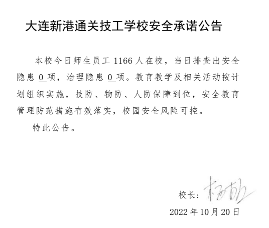 大连新港通关技工学校安全通告(10月20日)