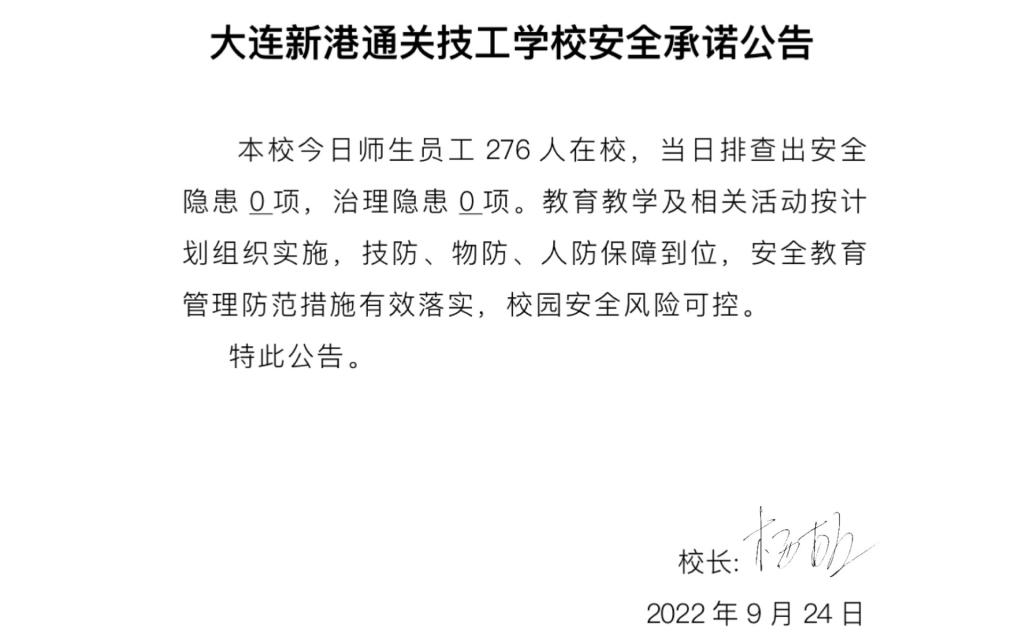 大连新港通关技工学校安全通告(9月24日)