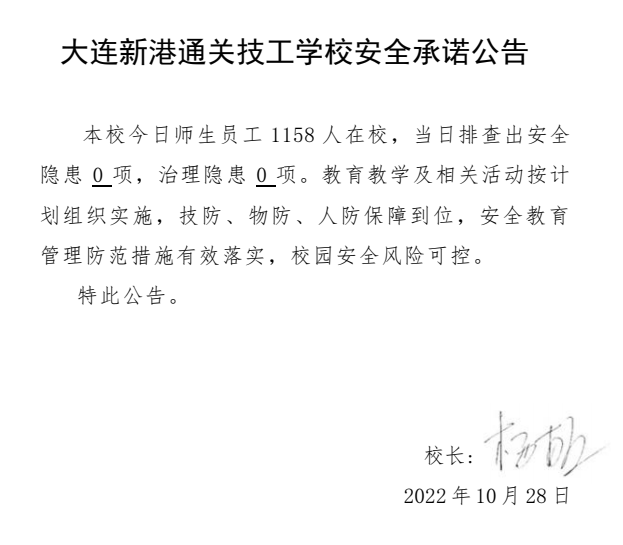 大连新港通关技工学校安全通告(10月29日)