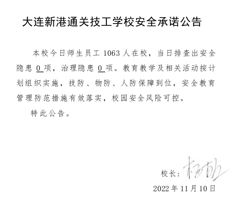 大连新港通关技工学校安全通告(11月10日)