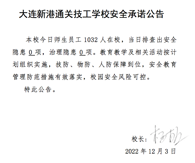 大连新港通关技工学校安全通告(12月3日)