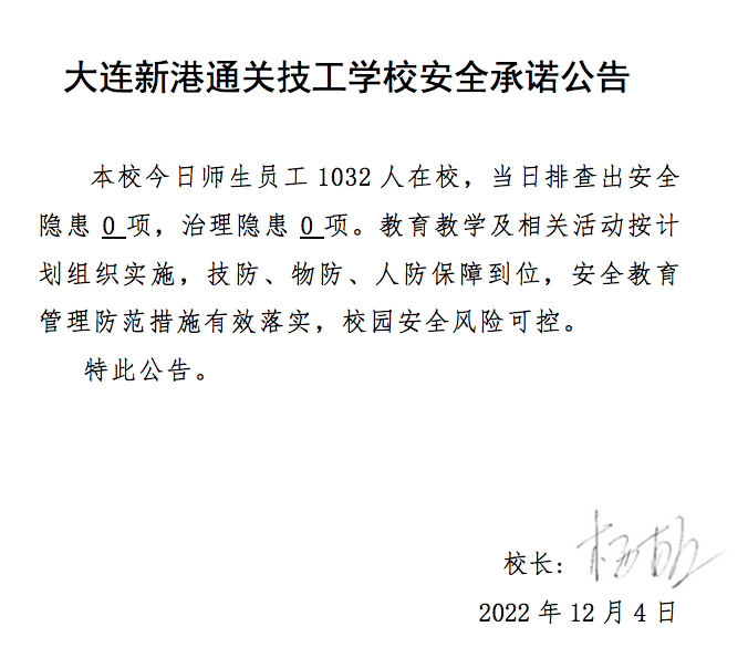 大连新港通关技工学校安全通告(12月4日)