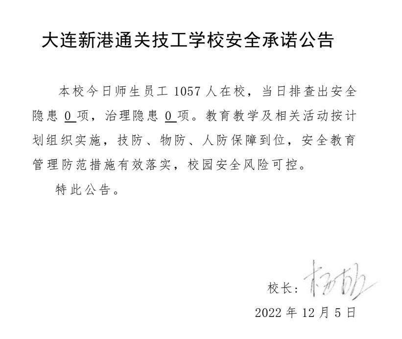 大连新港通关技工学校安全通告(12月5日)