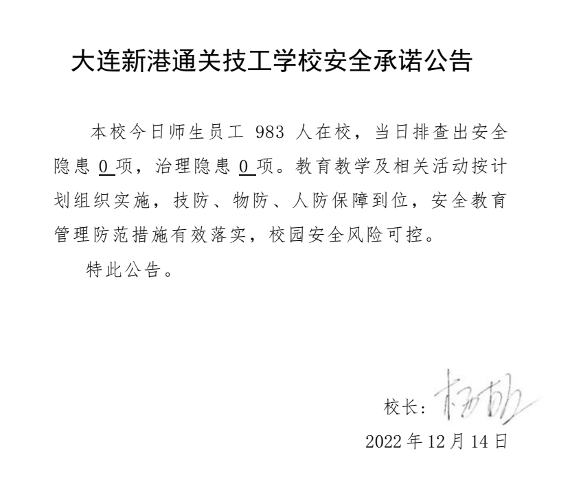 大连新港通关技工学校安全通告(12月14日)