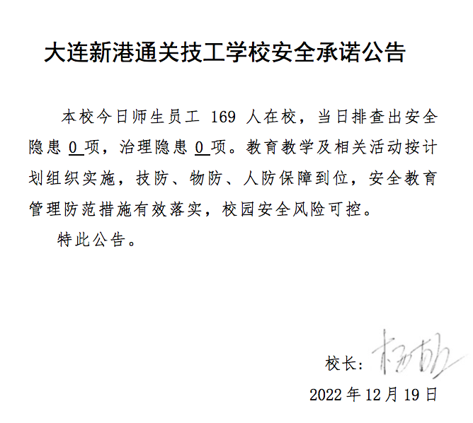 大连新港通关技工学校安全通告(12月19日)