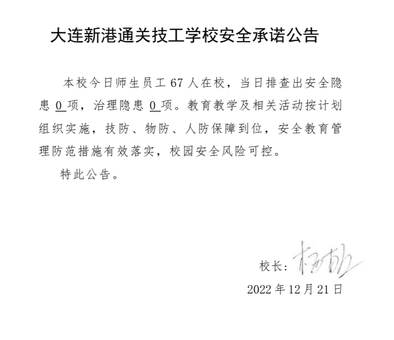 大连新港通关技工学校安全通告(12月21日)
