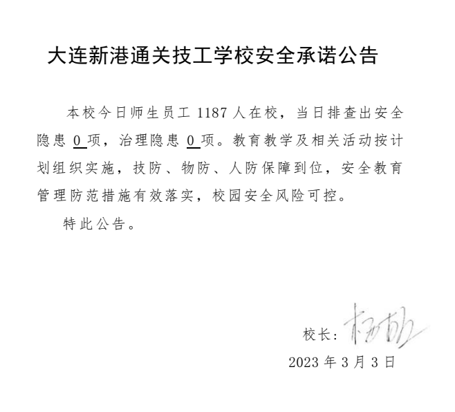 大连新港通关技工学校安全通告(2023年3月3日)