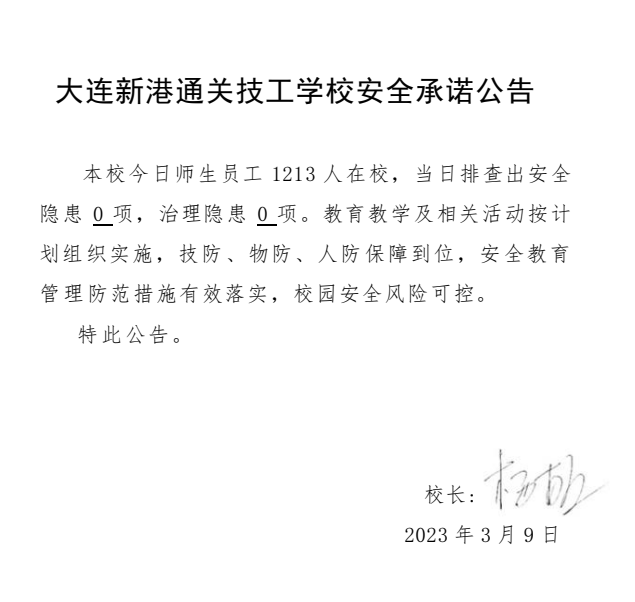 大连新港通关技工学校安全通告(2023年3月9日)