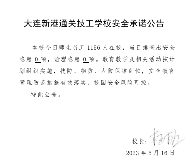 大连新港通关技工学校安全通告(2023年5月16日)