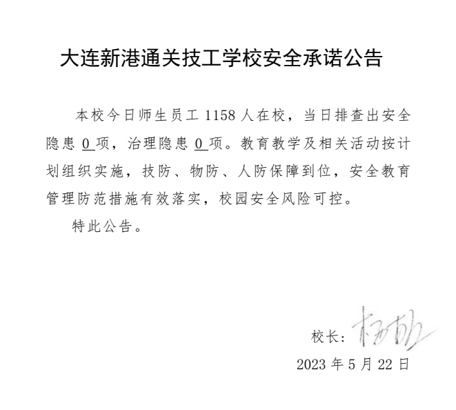 大连新港通关技工学校安全通告(2023年5月22日)