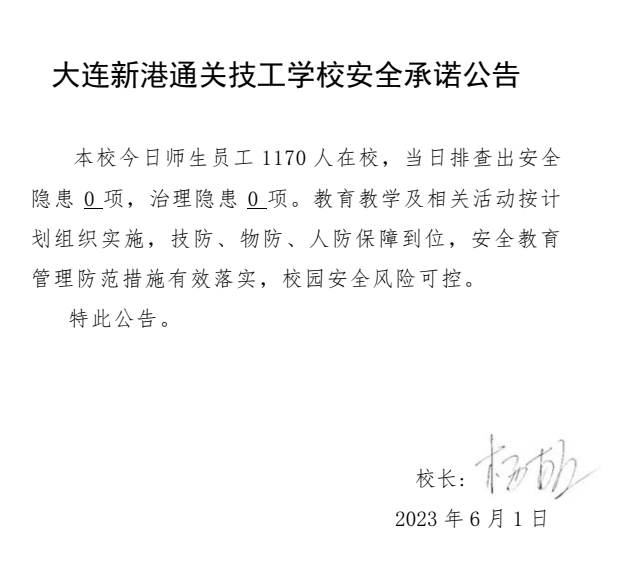 大连新港通关技工学校安全通告(2023年6月2日)