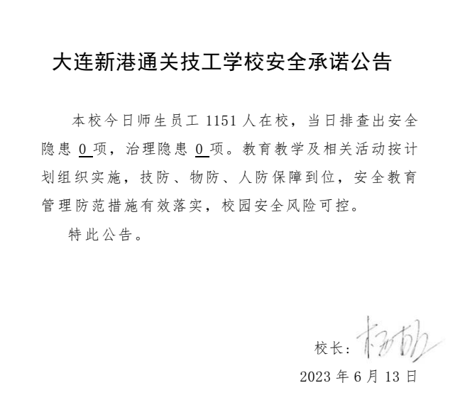 大连新港通关技工学校安全通告(2023年6月13日)