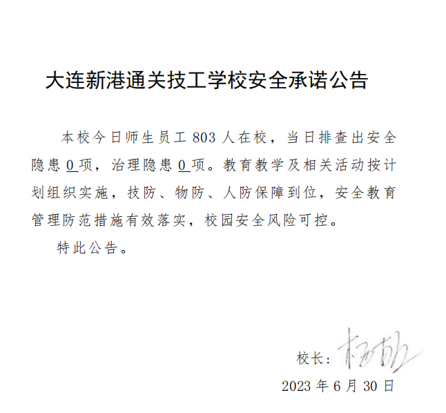 大连新港通关技工学校安全通告(2023年6月30日)