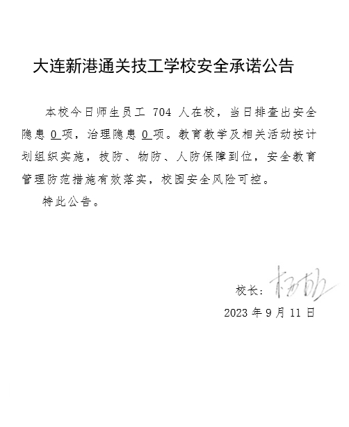 大连新港通关技工学校安全通告(2023年9月11日)