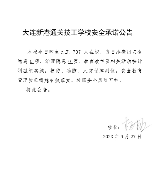 大连新港通关技工学校安全通告(2023年9月27日)