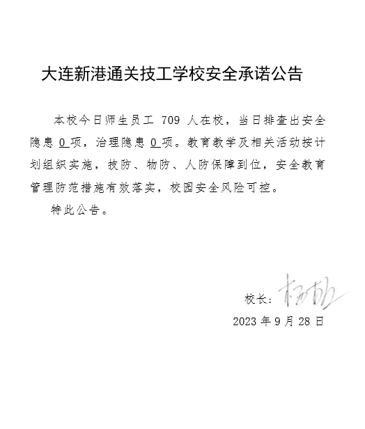 大连新港通关技工学校安全通告(2023年9月28日)