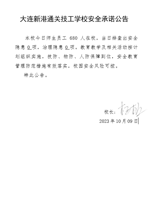 大连新港通关技工学校安全通告(2023年10月10日)