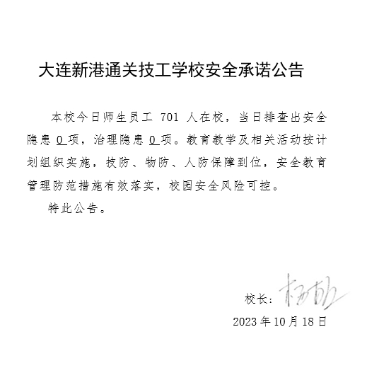 大连新港通关技工学校安全通告(2023年10月18日)