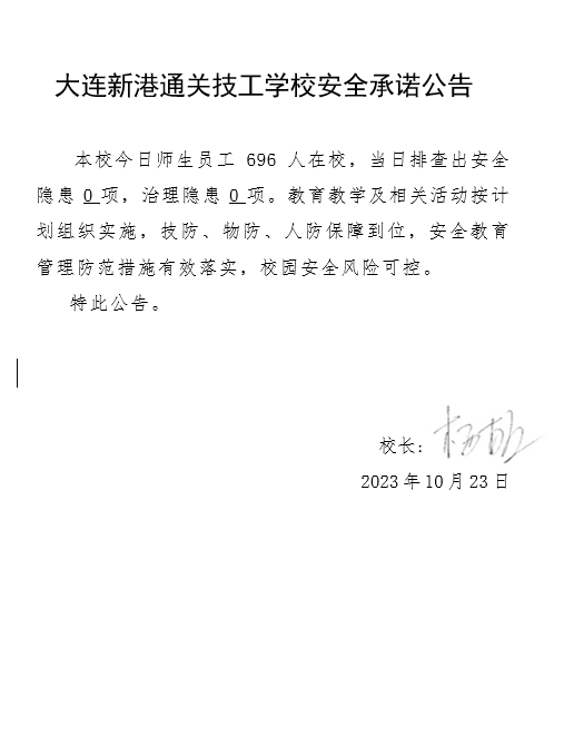 大连新港通关技工学校安全通告(2023年10月24日)