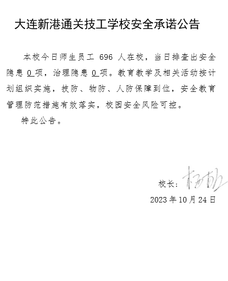 大连新港通关技工学校安全通告(2023年10月24日)
