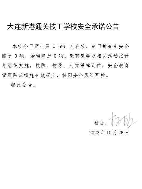 大连新港通关技工学校安全通告(2023年10月26日)