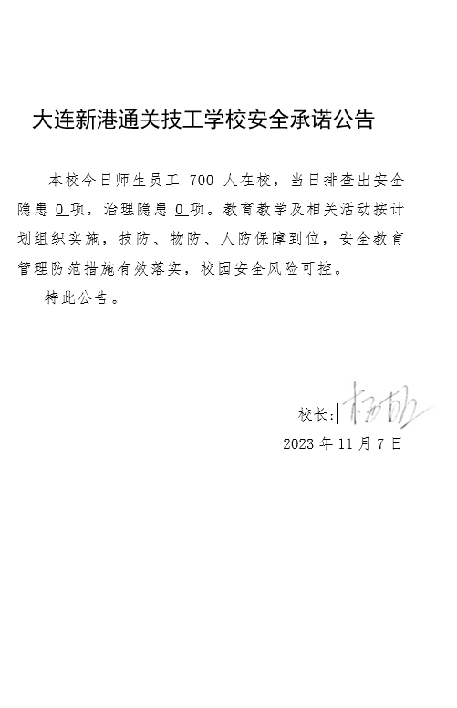 大连新港通关技工学校安全通告(2023年11月07日)