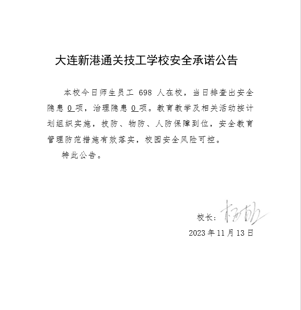 大连新港通关技工学校安全通告(2023年11月10日)